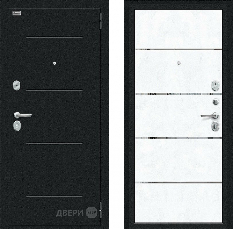 Дверь Bravo Лайн Букле черное/Snow Art в Шатуре 960х2050 мм