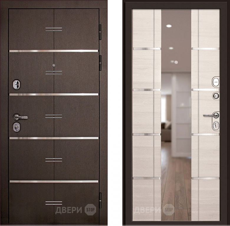 Входная металлическая Дверь (Дверной Континент) Савона с зеркалом Беленый дуб в Шатуре 860х2050 мм