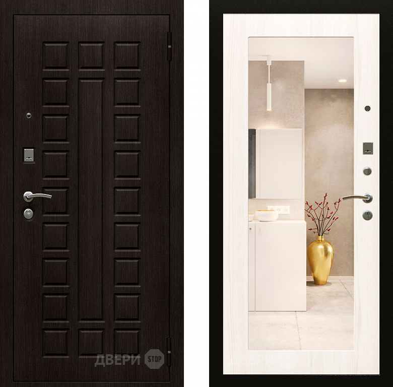 Входная металлическая Дверь Райтвер Сенат-лайф с зеркалом Беленый Дуб в Шатуре 860х2050 мм