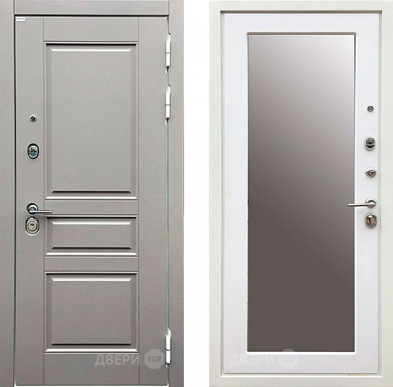 Входная металлическая Дверь Ратибор Лондон 3К с зеркалом Грей софт/Белый софт в Шатуре 860х2050 мм
