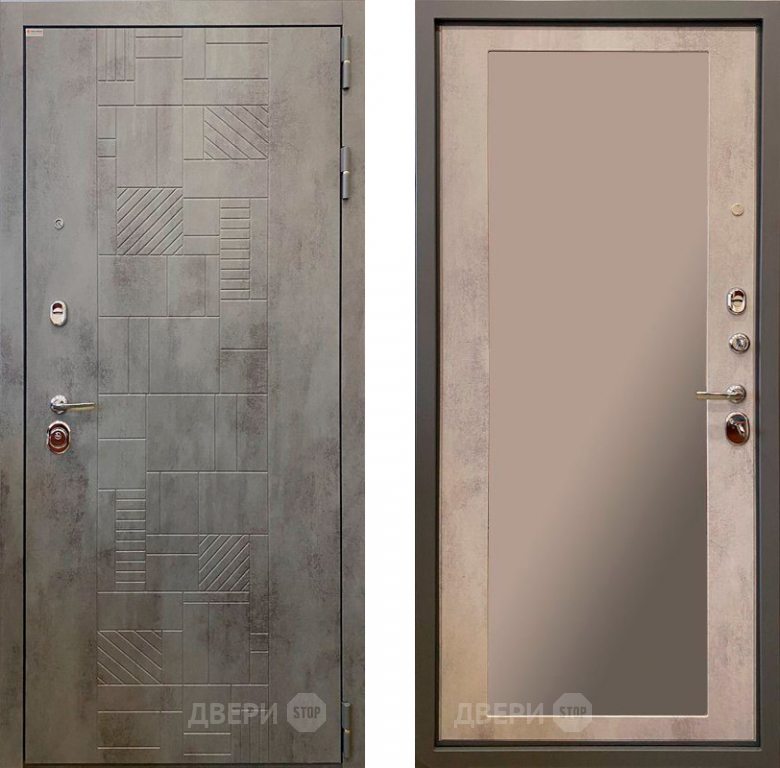 Входная металлическая Дверь Ратибор Тетрис 3К с зеркалом Бетон светлый в Шатуре 860х2050 мм