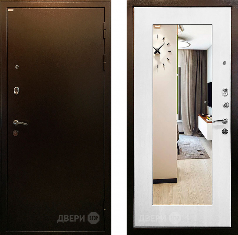 Входная металлическая Дверь Ратибор Милан 3К зеркало Белый ясень в Шатуре 860х2050 мм