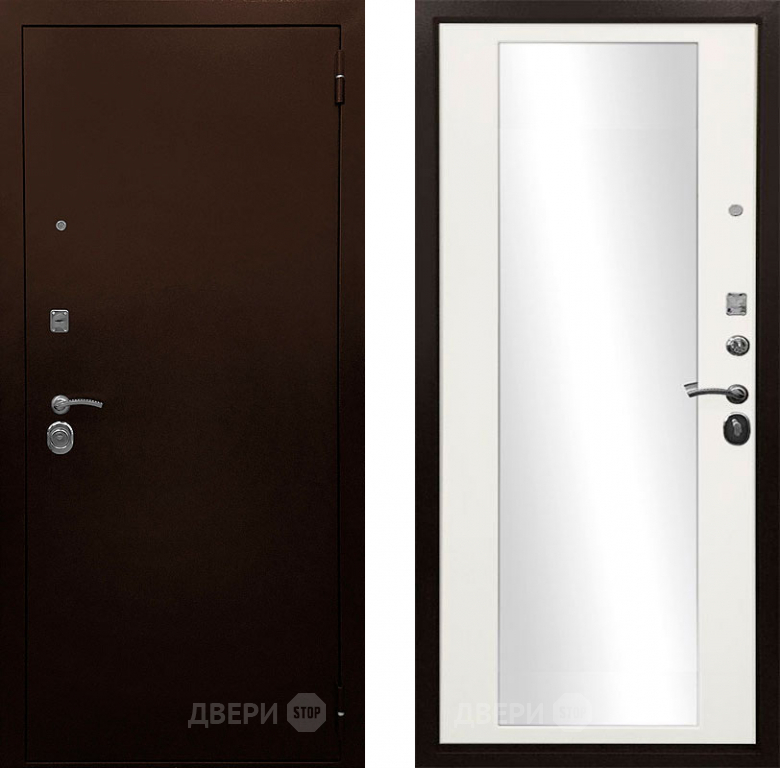 Входная металлическая Дверь Ратибор Рим 3К зеркало Белый матовый в Шатуре 860х2050 мм