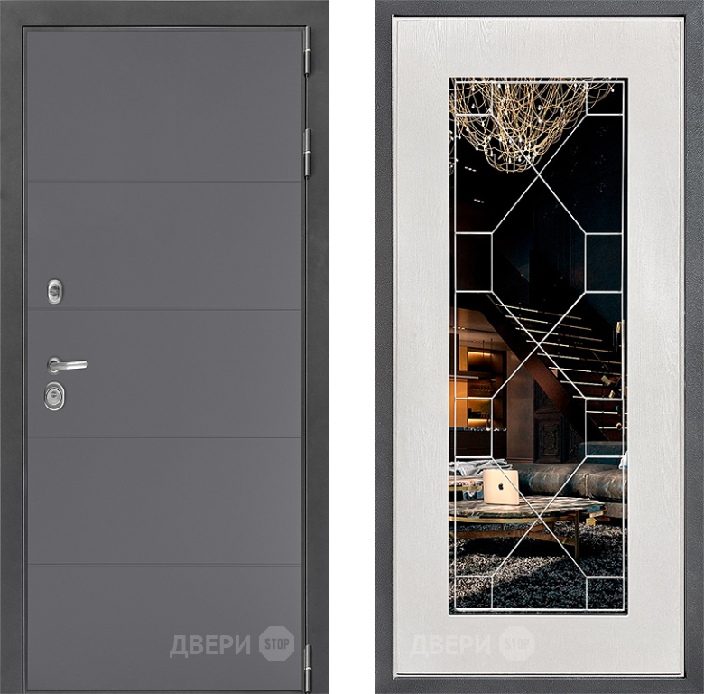 Входная Дверь Дверной континент ДК-3/649 ФЛ-Тиффани Зеркало Белое дерево 960x2050 мм