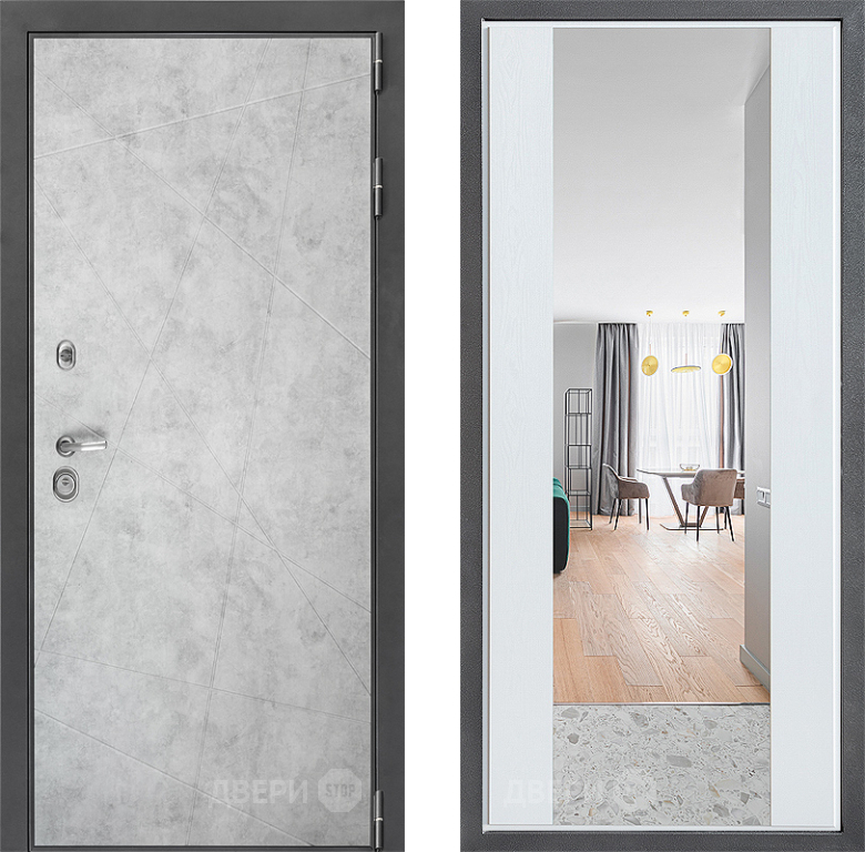 Входная Дверь Дверной континент ДК-3/743 ФЛЗ-1 Зеркало Белое дерево 960x2050 мм