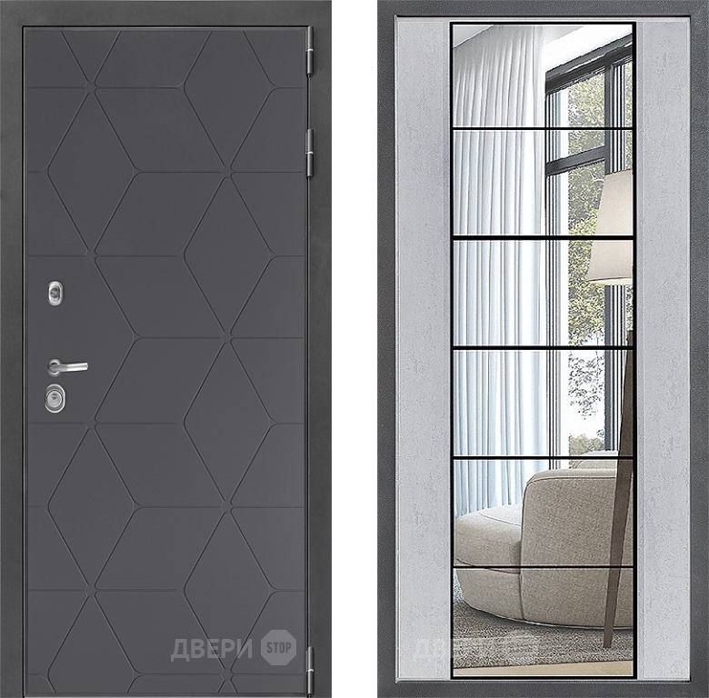 Входная Дверь Дверной континент ДК-3/744 ФЛЗ-2 Зеркало Бетон светлый 960x2050 мм