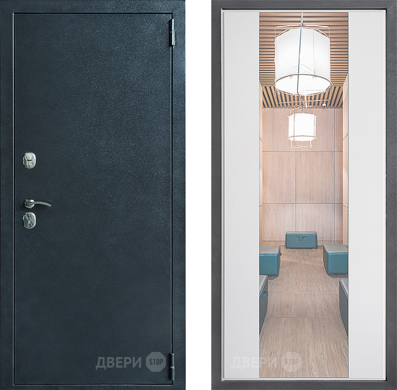 Входная Дверь Дверной континент ДК-70 Дизайн ФЛЗ-1 Зеркало Белый софт 960x2050 мм