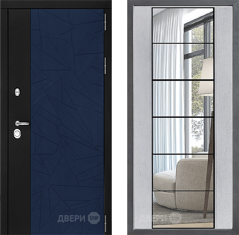 Входная Дверь Дверной континент ДК-9 ФЛЗ-2 Зеркало Бетон светлый 960x2050 мм
