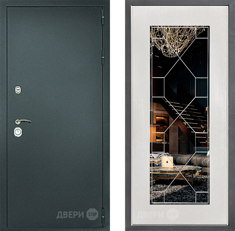 Входная Дверь Дверной континент Рубикон Серебро Дизайн ФЛ-Тиффани Зеркало Белое дерево 960x2050 мм