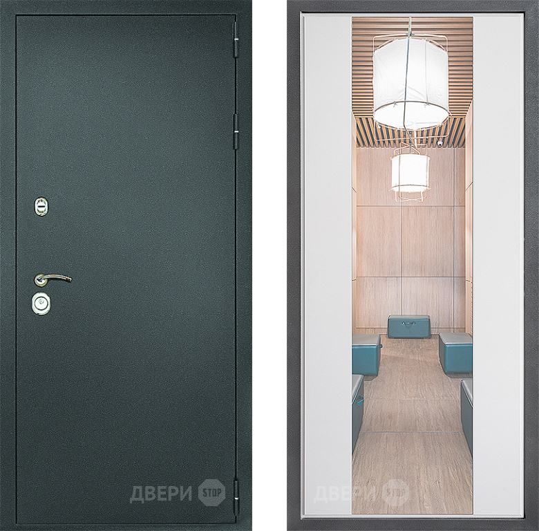 Входная Дверь Дверной континент Рубикон Серебро Дизайн ФЛЗ-1 Зеркало Белый софт 860x2050 мм