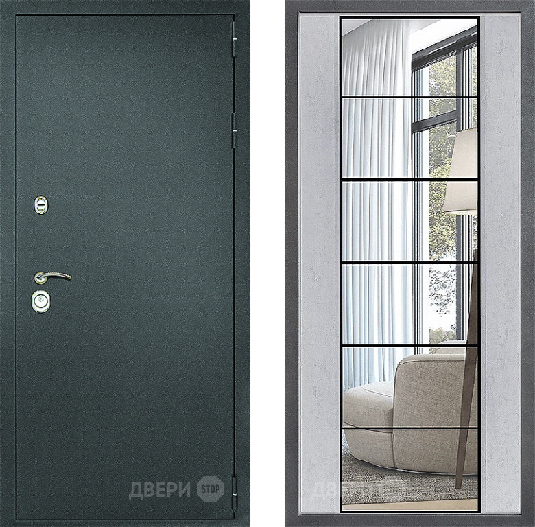 Входная Дверь Дверной континент Рубикон Серебро Дизайн ФЛЗ-2 Зеркало Бетон светлый 860x2050 мм