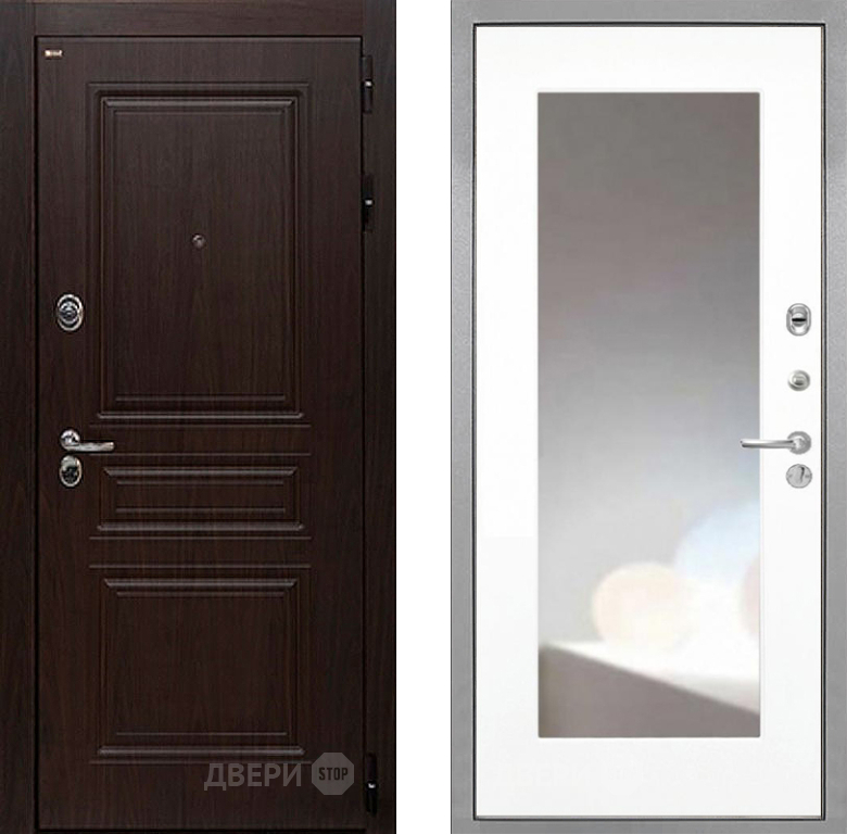 Входная Дверь Интекрон (INTECRON) Брайтон Тиковое Дерево ФЛЗ-120-М Зеркало Белый матовый 960x2050 мм