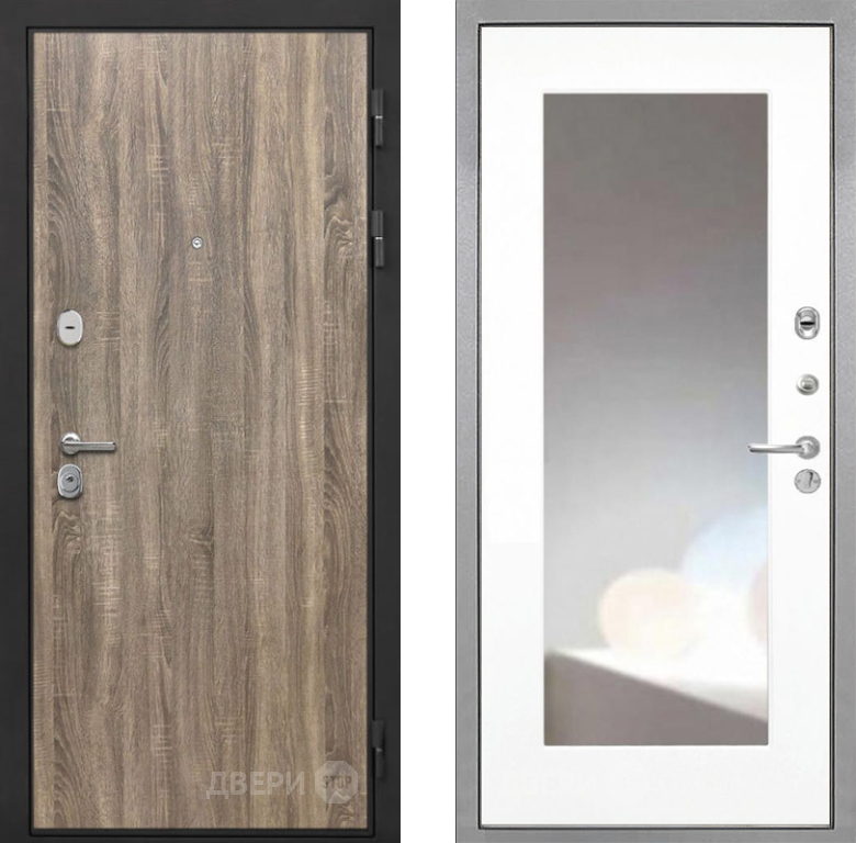 Входная Дверь Интекрон (INTECRON) Гектор Дуб Турин ФЛЗ-120-М Зеркало Белый матовый 860x2050 мм