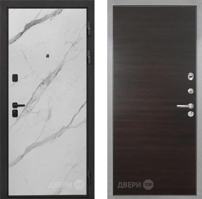 Входная Дверь Интекрон (INTECRON) Профит Black Мрамор Арктик Гладкая Эковенге поперечный 960x2050 мм