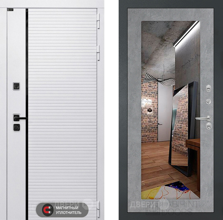 Входная Дверь Лабиринт (LABIRINT) Royal Зеркало 18 Бетон светлый 960x2050 мм