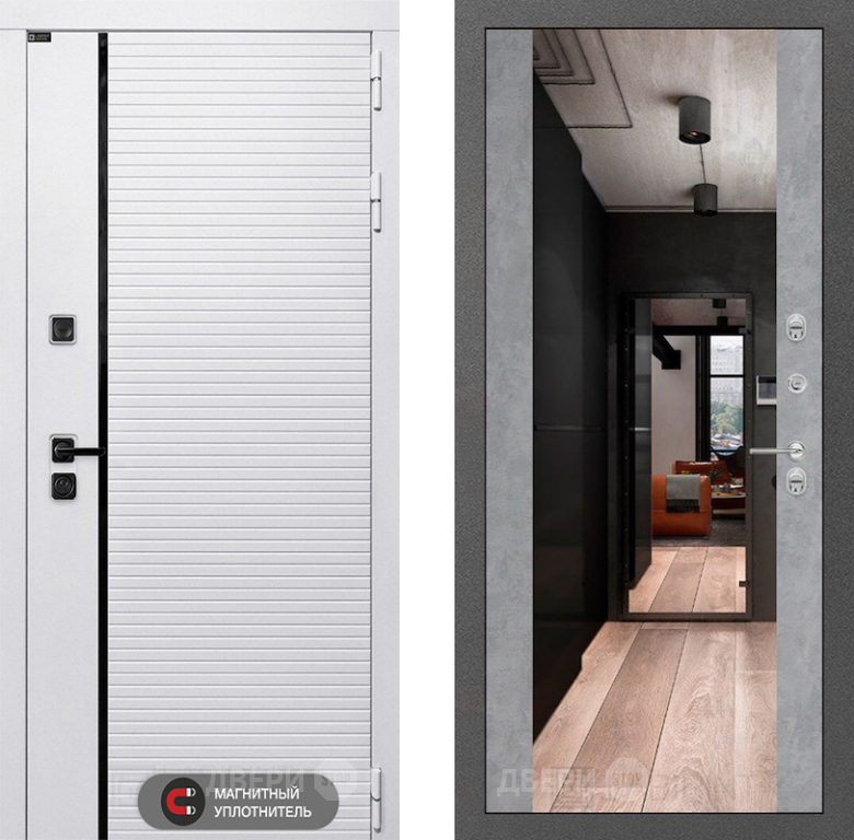 Входная Дверь Лабиринт (LABIRINT) Royal Зеркало Максимум Бетон светлый 960x2050 мм