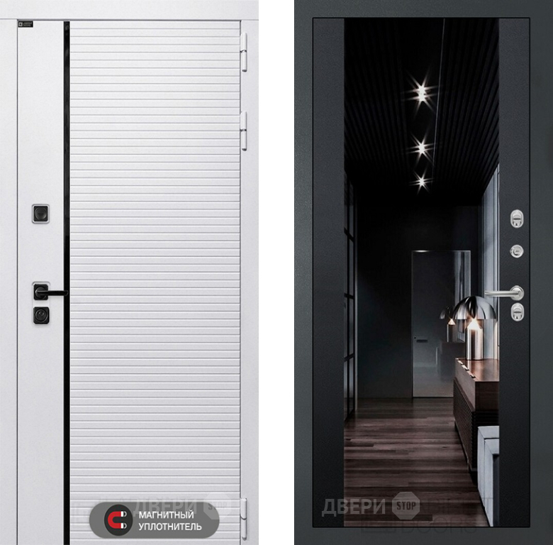 Входная Дверь Лабиринт (LABIRINT) Royal Зеркало Максимум с тонировкой Черный кварц 960x2050 мм