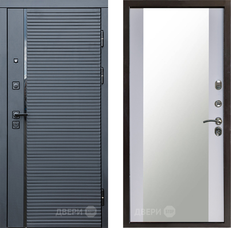 Входная Дверь Престиж Черная Линия Зеркало Белый софт 860x2050 мм