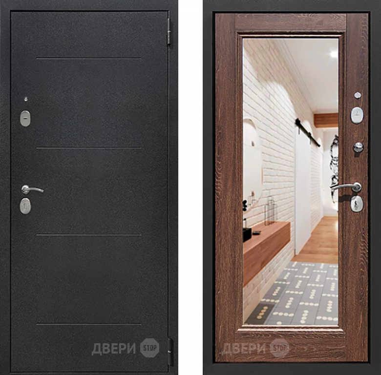 Входная металлическая Дверь Престиж 100 с зеркалом Шелк/Дуб филадельфия коньяк в Шатуре 860х2050 мм
