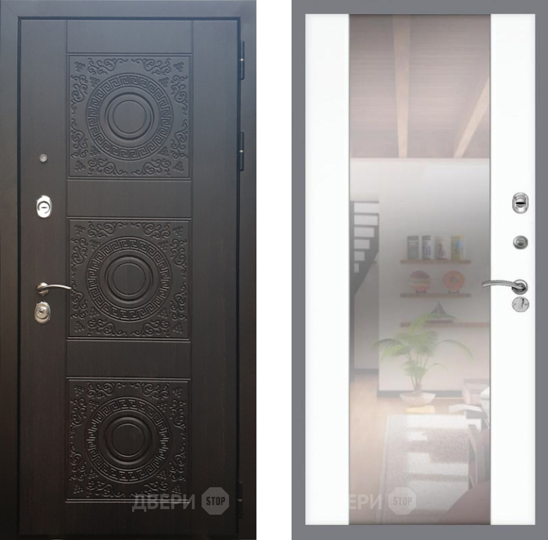 Входная Дверь Рекс (REX) 10 СБ-16 Зеркало Силк Сноу 860x2050 мм