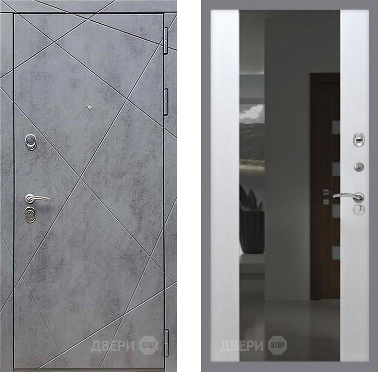 Входная Дверь Рекс (REX) 13 Бетон Темный СБ-16 Зеркало Белый ясень 860x2050 мм