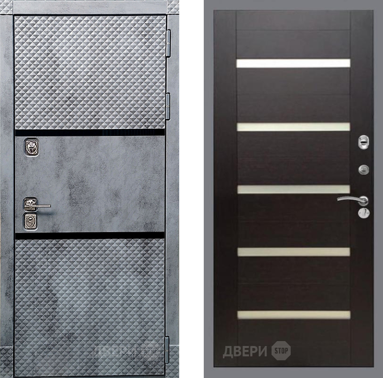 Входная Дверь Рекс (REX) 15 Бетон Темный СБ-14 стекло белое венге поперечный 960x2050 мм