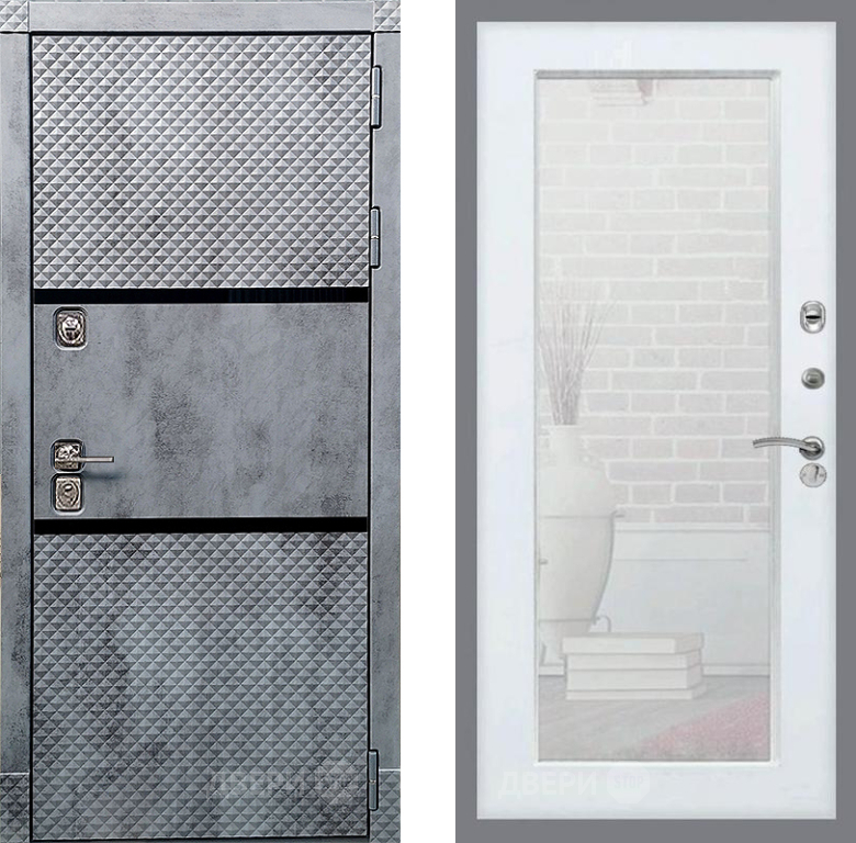 Входная Дверь Рекс (REX) 15 Бетон Темный Зеркало Пастораль Силк Сноу 960x2050 мм