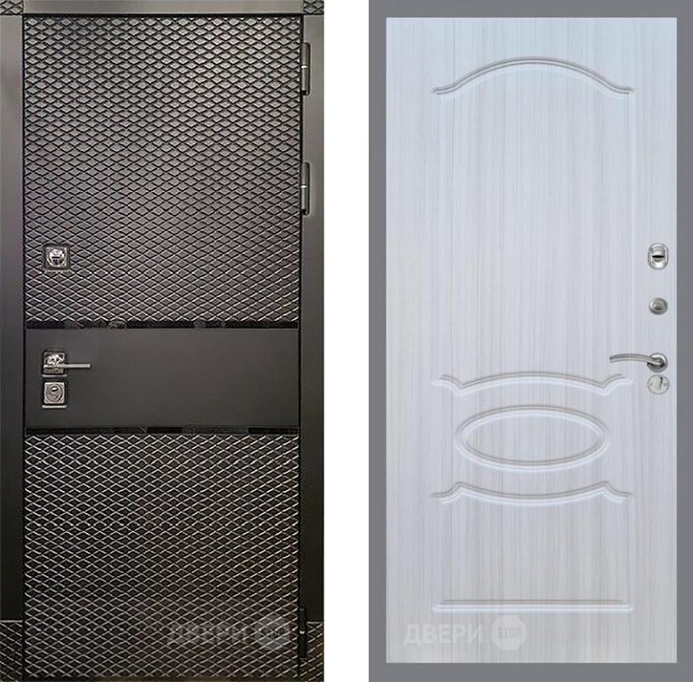 Входная Дверь Рекс (REX) 15 Черный Кварц FL-128 Сандал белый 860x2050 мм