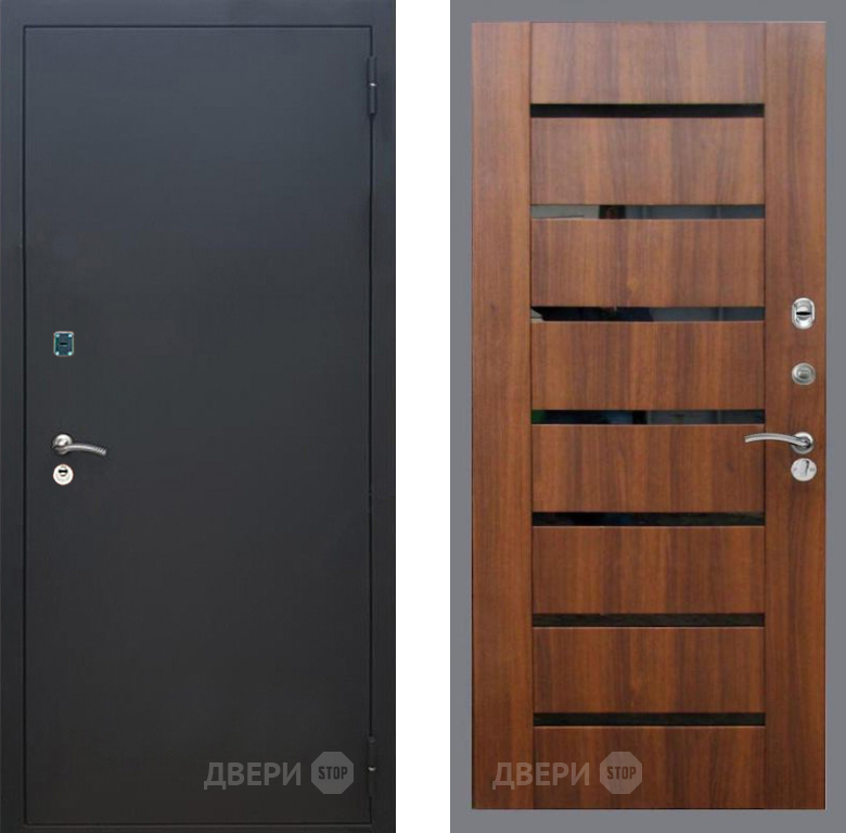 Входная Дверь Рекс (REX) 1A Черный Муар СБ-14 стекло черное Орех бренди 860x2050 мм