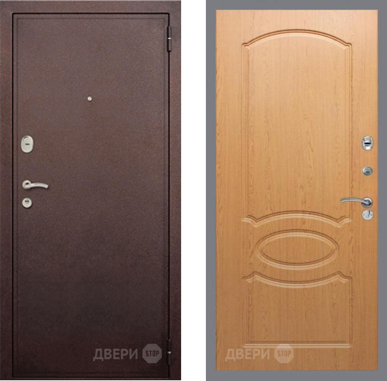 Входная Дверь Рекс (REX) 2 Медный Антик FL-128 Дуб 860x2050 мм