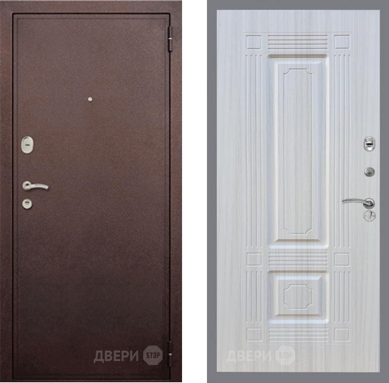 Входная Дверь Рекс (REX) 2 Медный Антик FL-2 Сандал белый 860x2050 мм