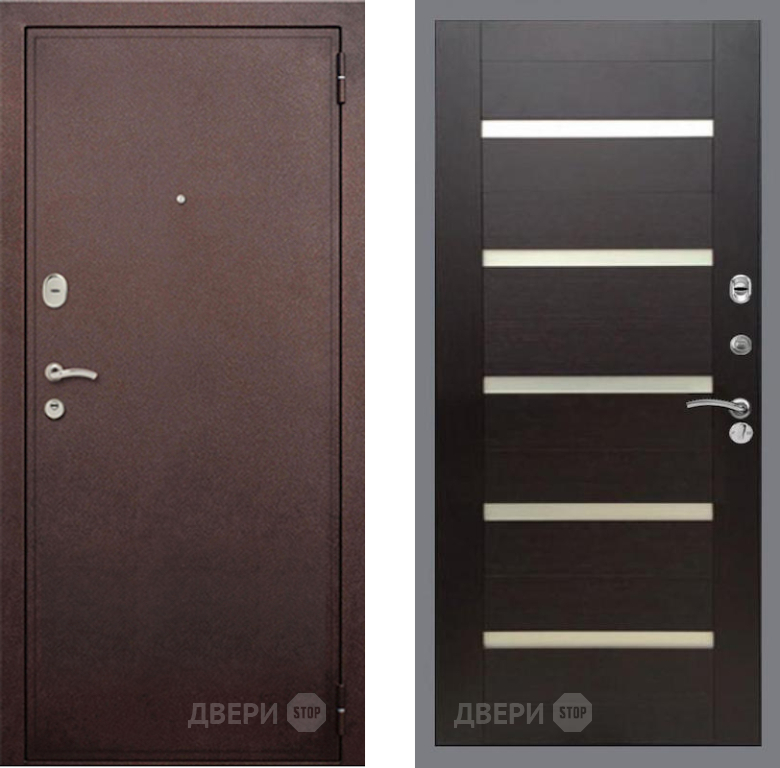 Входная Дверь Рекс (REX) 2 Медный Антик СБ-14 стекло белое венге поперечный 960x2050 мм