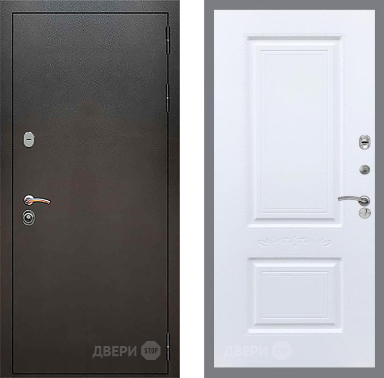 Входная Дверь Рекс (REX) 5 Серебро Антик Смальта Силк Сноу 860x2050 мм