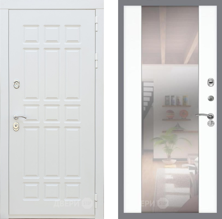 Входная Дверь Рекс (REX) 8 Силк Сноу СБ-16 Зеркало Силк Сноу 860x2050 мм