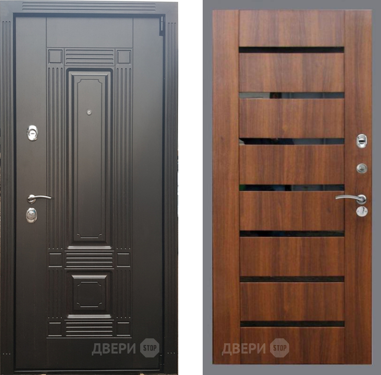 Входная Дверь Рекс (REX) 9 СБ-14 стекло черное Орех бренди 960x2050 мм