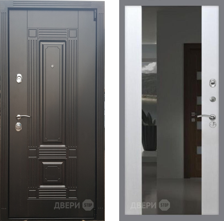 Входная Дверь Рекс (REX) 9 СБ-16 Зеркало Белый ясень 960x2050 мм