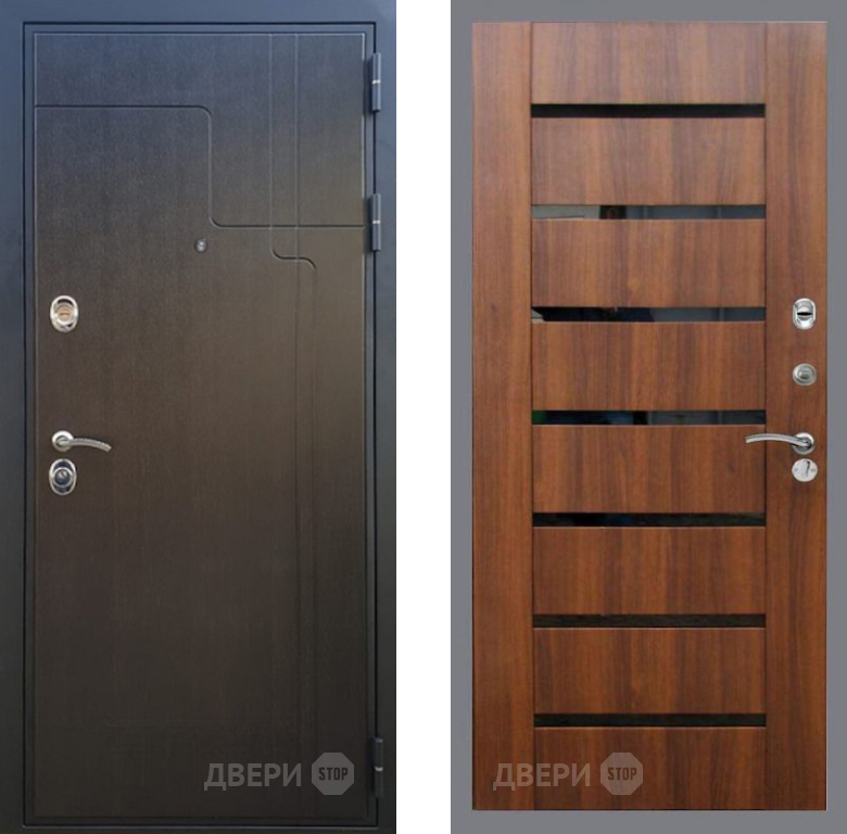 Входная Дверь Рекс (REX) Премиум-246 СБ-14 стекло черное Орех бренди 960x2050 мм