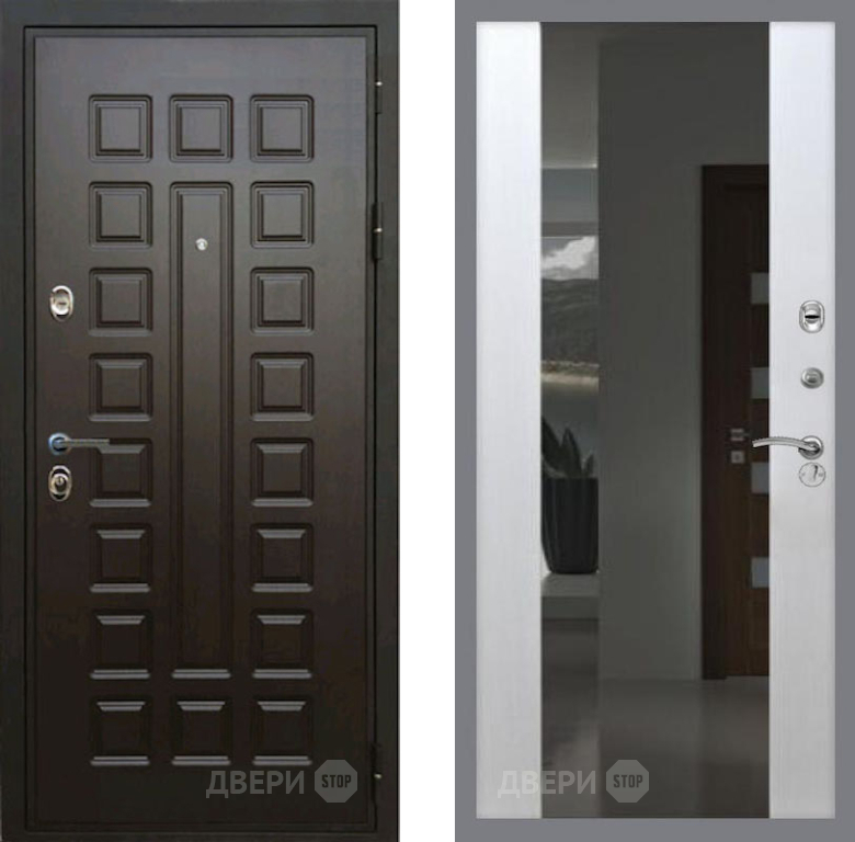Входная Дверь Рекс (REX) Премиум 3к СБ-16 Зеркало Белый ясень 960x2050 мм