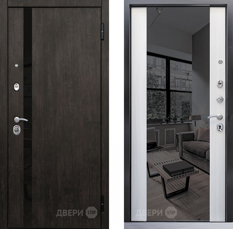 Входная металлическая Дверь Премьер зеркало тиковое дерево/лиственница белая в Шатуре 860х2050 мм