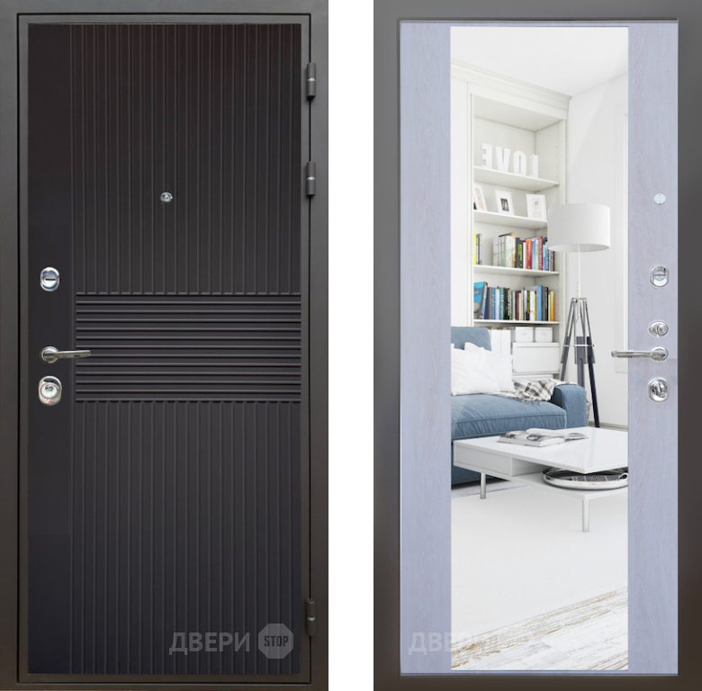 Входная Дверь Шелтер (SHELTER) Комфорт Черная шагрень 12 с зеркалом Дуб филадельфия крем 860x2050 мм