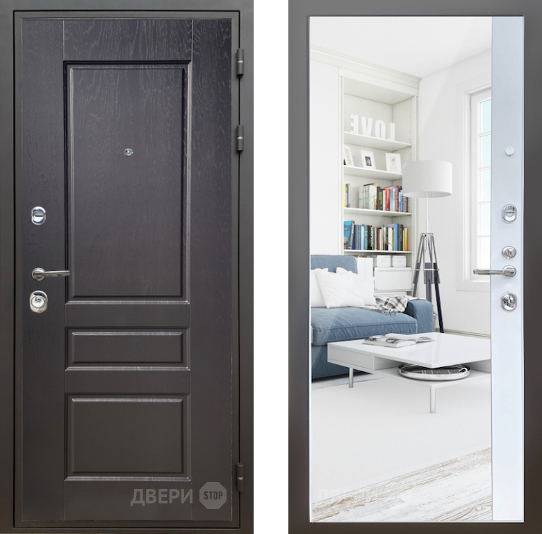 Входная Дверь Шелтер (SHELTER) Комфорт Дуб английский 14 с зеркалом Белый матовый 960x2050 мм
