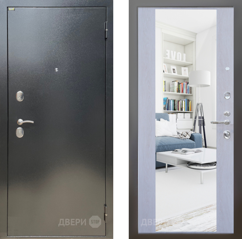 Входная Дверь Шелтер (SHELTER) Стандарт 12 с зеркалом Дуб филадельфия крем 960x2050 мм