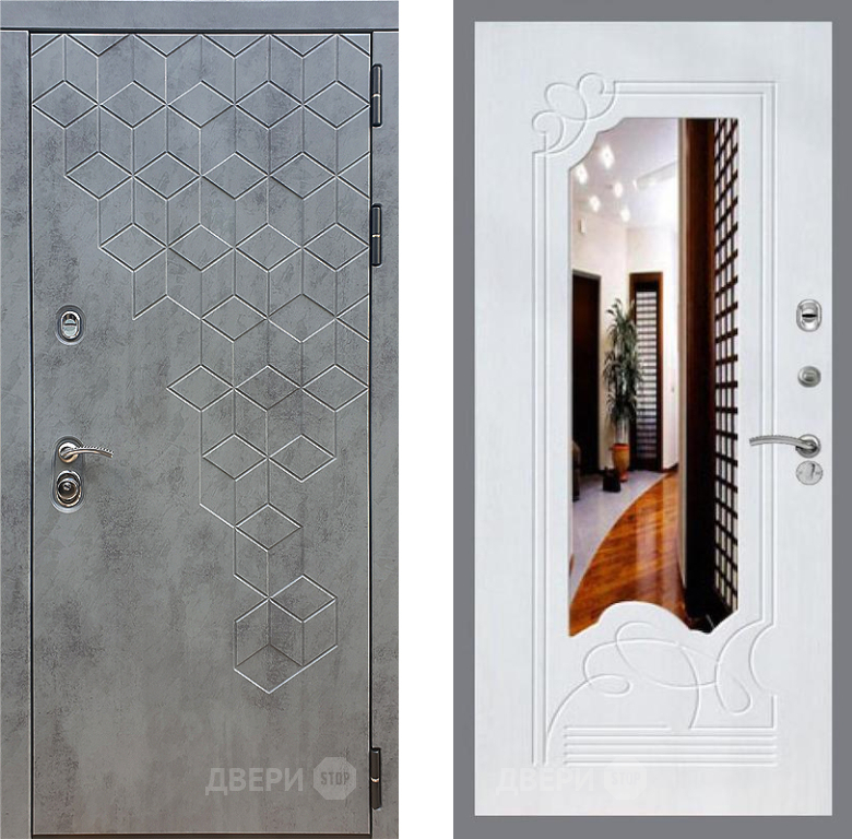 Входная Дверь Стоп БЕТОН ЗкркалоФЛ-147 Ясень белый 860x2050 мм