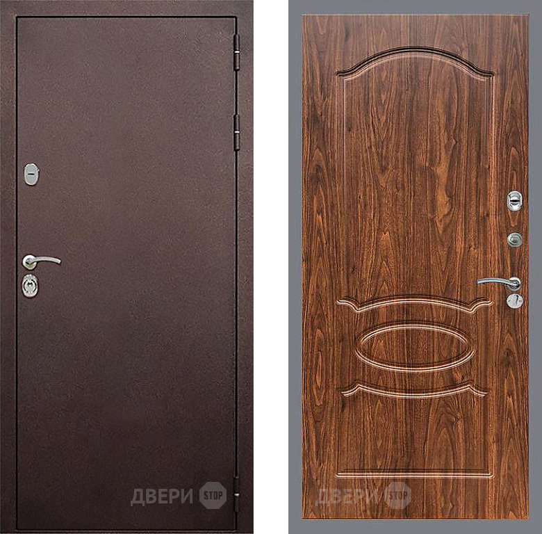 Входная Дверь Стоп КЛАССИК Медь ФЛ-128 орех тисненый 960x2050 мм
