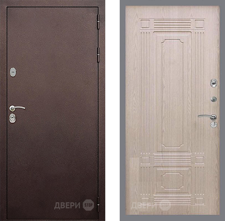 Входная Дверь Стоп КЛАССИК Медь ФЛ-2 Беленый дуб 960x2050 мм