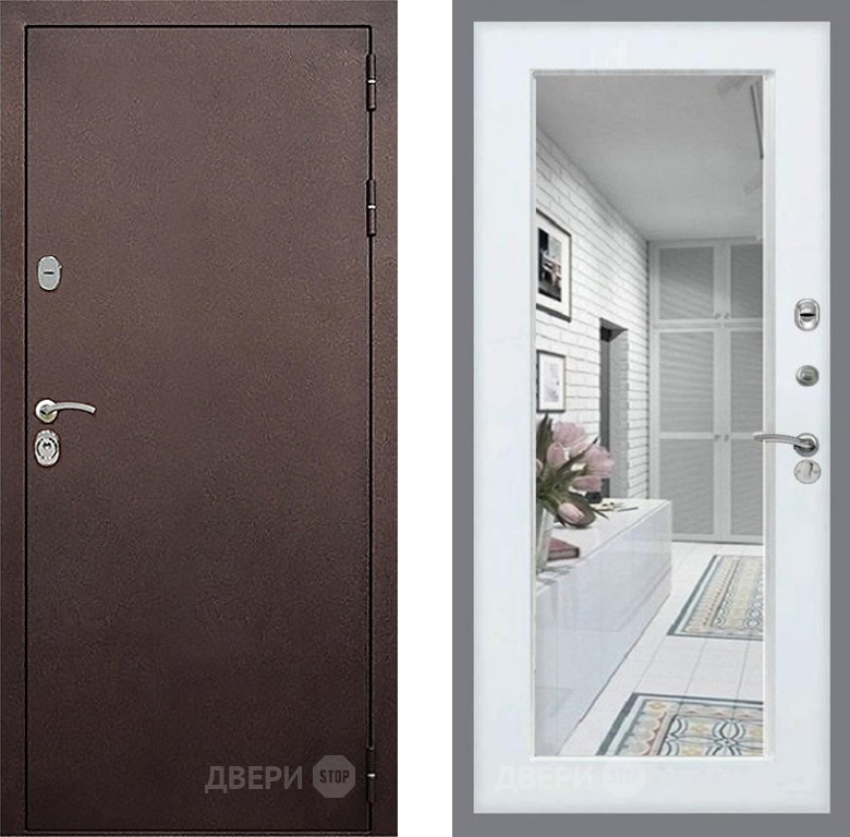 Входная Дверь Стоп КЛАССИК Медь Зеркало Белый ясень 860x2050 мм