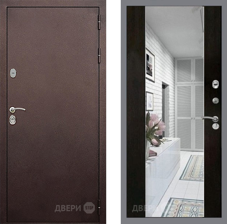 Входная Дверь Стоп КЛАССИК Медь Зеркало СБ-16 Венге 960x2050 мм