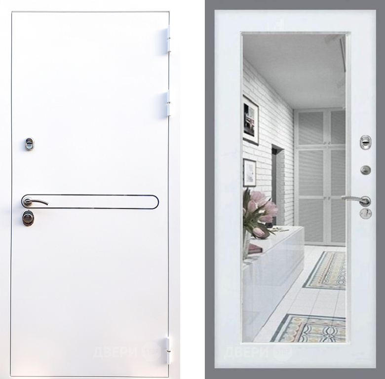 Входная Дверь Стоп Лайн Вайт Зеркало Белый ясень 960x2050 мм