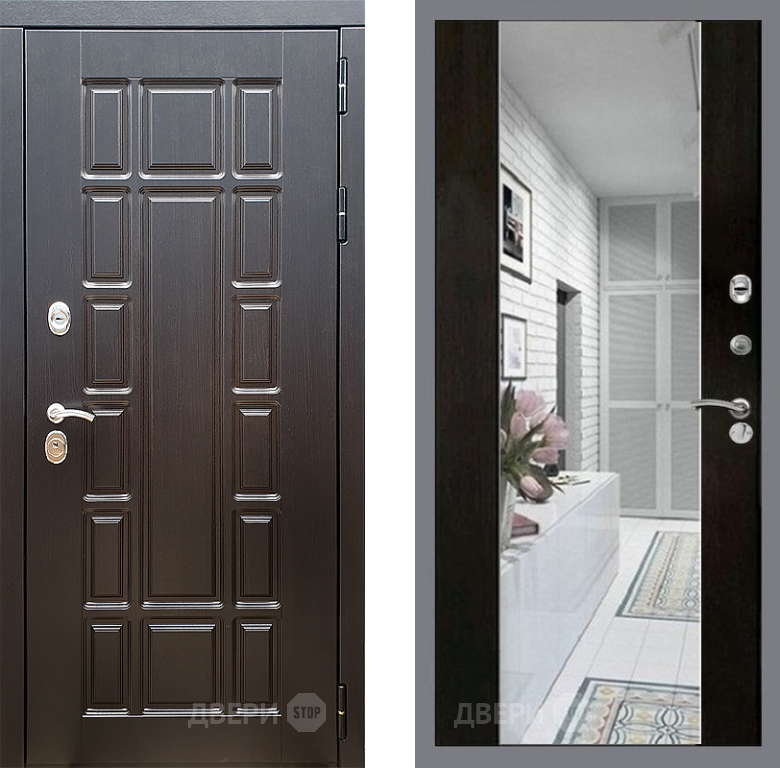 Входная Дверь Стоп НЬЮ ЙОРК Зеркало СБ-16 Венге 960x2050 мм