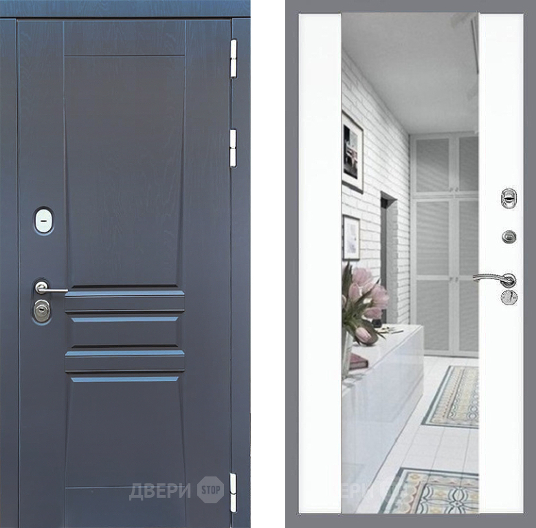Входная Дверь Стоп ПЛАТИНУМ Зеркало СБ-16 Силк Сноу 860x2050 мм